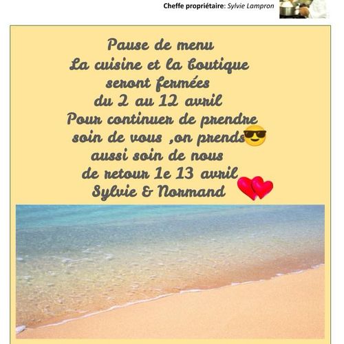 La cuisine et la boutique seront en pause du 2 au 12 avril .