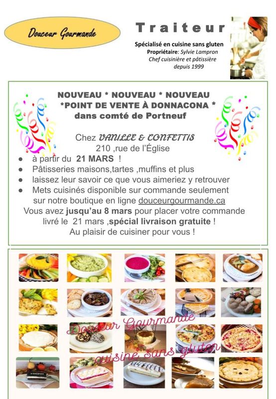 Publireportage dans Coeliaque Québec sur Douceur GourmandeDouceur Gourmande : quand passion, santé et plaisir riment avec sans gluten...