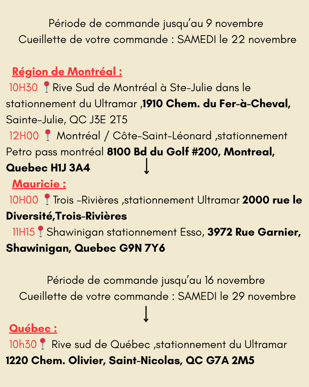 * Mentionnez vos choix d'accompagnements et d'entrées dans les commentaires ainsi que les remplacements en indiquant le numéro; exemple 1- patate pilée +légumes
